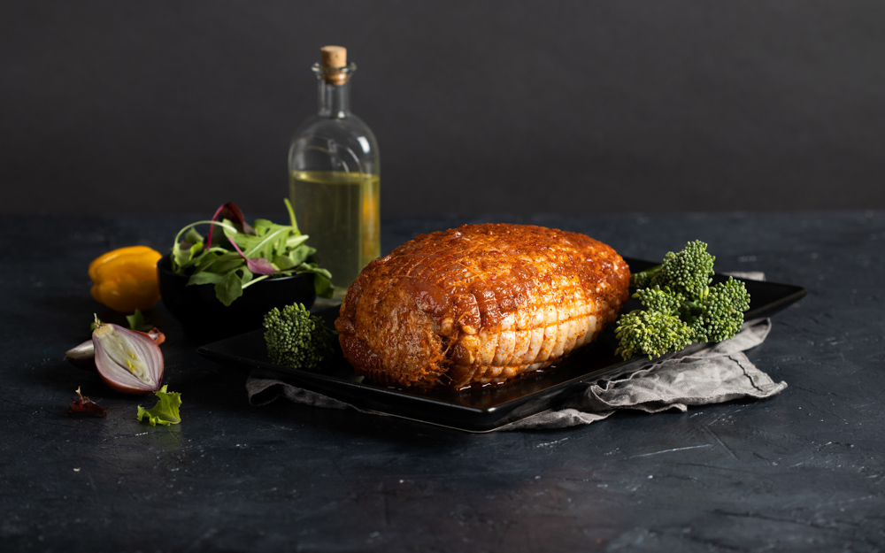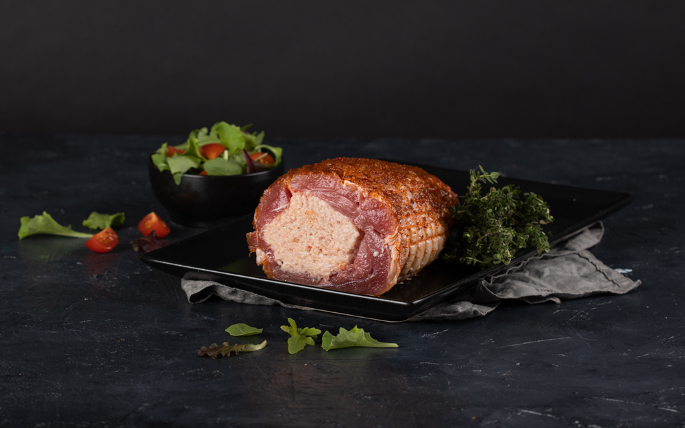 A meat roll made from turkey and pork, seasoned and salted. The meat product is not heat-treated and needs to undergo cooking, such as in the oven. The product is processed in our facility in Brniště. Turkey meat and products made from it come from the Czech Republic, specifically from the Prominent CZ facility in Brniště.